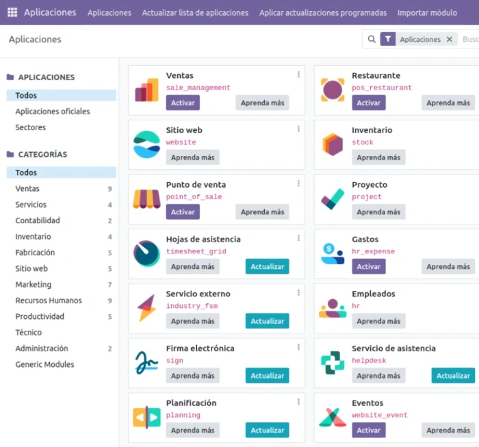 Odoo es una plataforma de software empresarial que te ofrece una amplia gama de aplicaciones completamente integradas. Desde la gestión de ventas y CRM, hasta la contabilidad, recursos humanos, inventario y fabricación, Odoo cubre todas las áreas de tu negocio.
