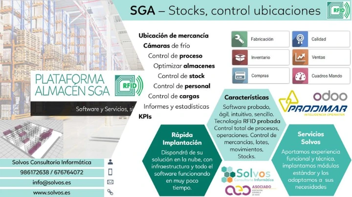 Tras más de 8 años de colaboración con la empresa de ingeniería Prodimar, aplicando sus dispositivos RFID en nuestros proyectos, en Solvos nos hemos hecho integradores de sus soluciones en la provincia de Pontevedra, colaborando con ellos, aportando nuevas ideas, y dando valor a sus dispositivos de alta calidad y rendimiento, al integrarlos en una plataforma en software libre basada en odoo, ofreciendo con ello una solución completa.