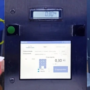 - Empaquetamos y etiquetamos el producto con un solo pesaje en báscula, integrado en el ERP. Descontando del stock el producto original y generando PT.