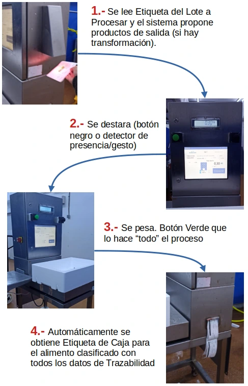 Para el procesado de alimentos, en este caso, en concreto para el sector Pesca, aunque extensible a otros sectores (frutas, verduras, carnes,...) diseñamos y construimos un armario de pesaje, conectado a odoo, en el que con un sólo botón "EMPAQUETAR" y en menos de 2 segundos, conseguimos:
